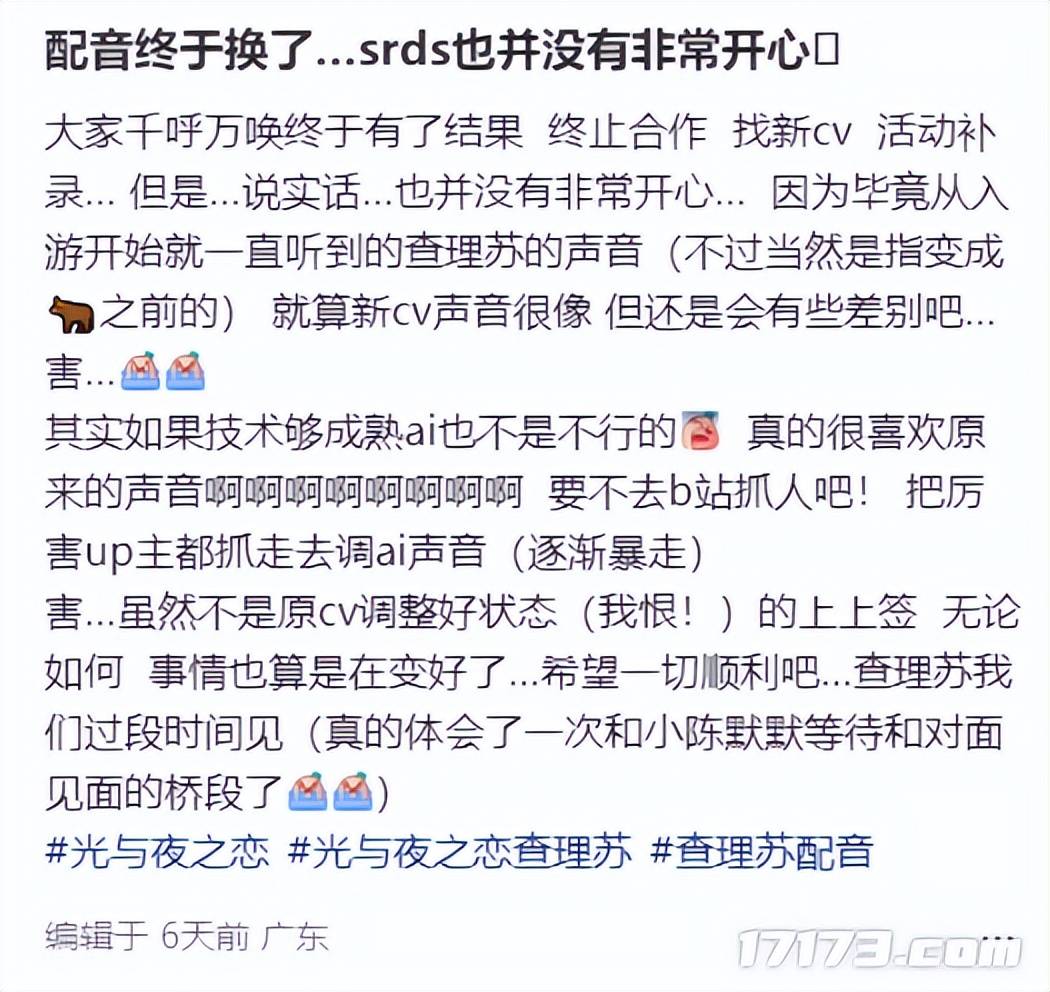 对《光与夜之恋》玩家来说,真正的考验才刚开始:新CV何时上线?能不能接住查理苏这个集贵气、傲娇、幽默于一身的复杂人设?没人敢打包票。