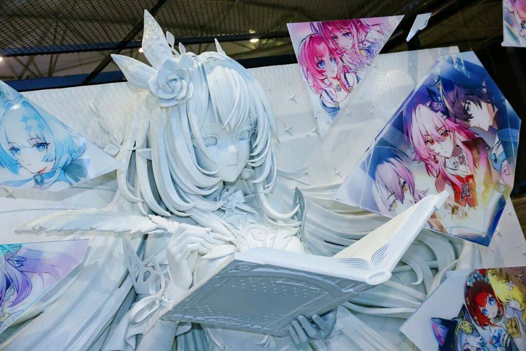展厅最前方的雕塑下,聚集了数十位精致的Coser,以及无数合影打卡的玩家,每个人脸上的神情都十分兴奋。而且和其他展会的情景不同,这里的人,更像是在庆祝一场属于自己的胜利。