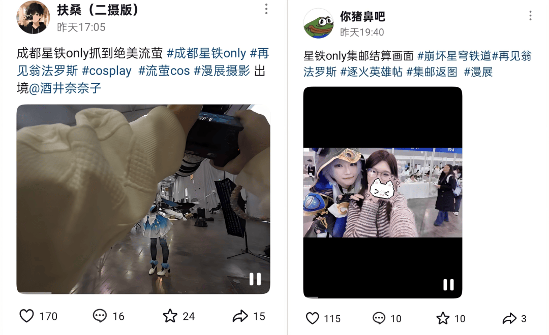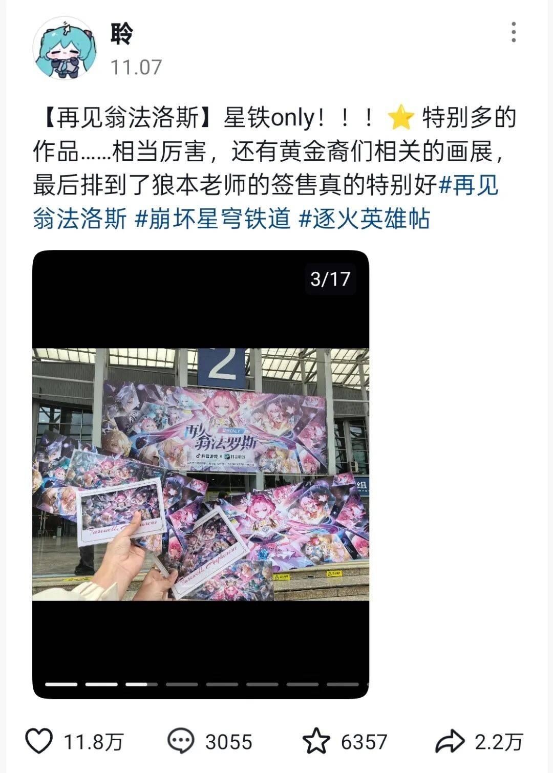 毕竟,同人和二创本来就是属于创作者的艺术。观察社区趋势,顺势而为,在必要时为创作者提供支持,可能远比自顾自举办活动的效果要好。包括“再见翁法罗斯”中,重要的也不只有头部KOL的大作,还有无数中小创作者,以及普通玩家的作品、表演和参与。
