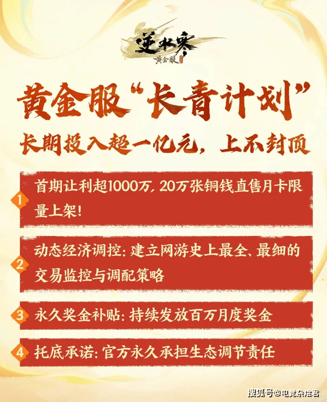 如今,《逆水寒》走过七年,但依然彰显出优秀的长线运营能力,在2025年6月,其黄金服正式启动“长青计划”,长期投入预计将超过一亿元,上不封顶,用于维护黄金服稳定运营。