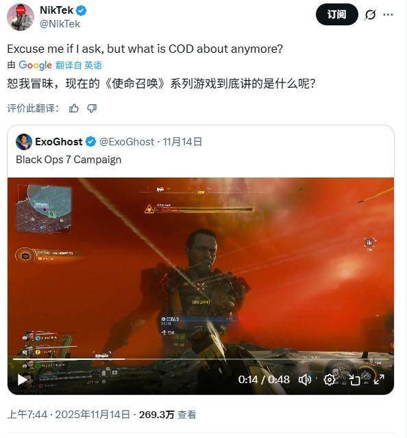 在X上,大量玩家对《黑色行动7》的单人战役提出质疑:这还是《使命召唤》?