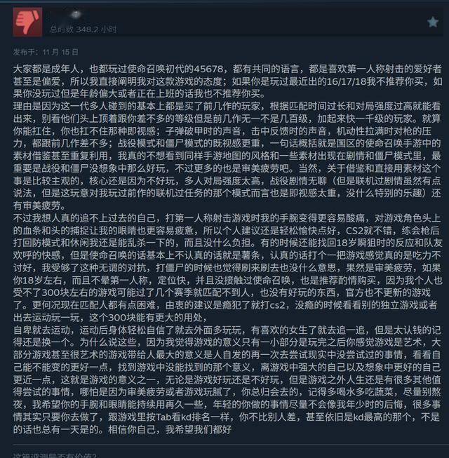 这标志着《使命召唤22:黑色行动7》在Steam平台的首日玩家数量下降了约70%。目前,该游戏在Steam上的评价为“褒贬不一”,凸显大量玩家不接受这款新作。
