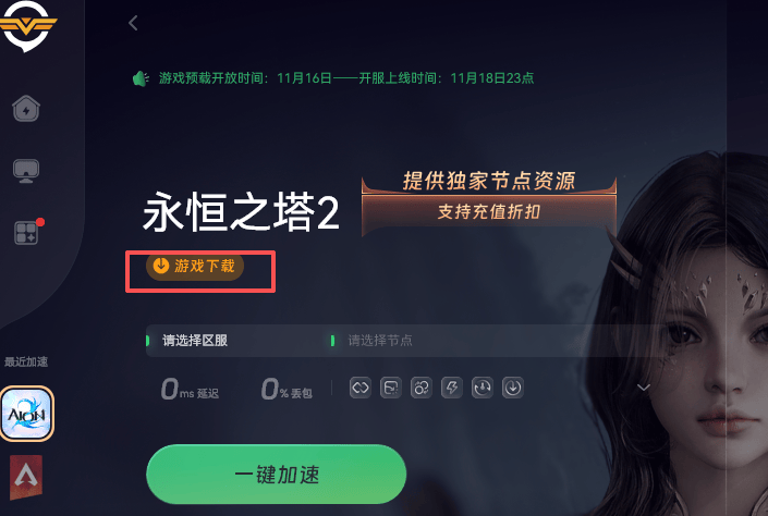 永恒之塔2 11月16日就要早上11点开始预下载,下午13点抢服捏脸,这时候游戏的下载速度就非常关键了,教大家一个有效解决办法