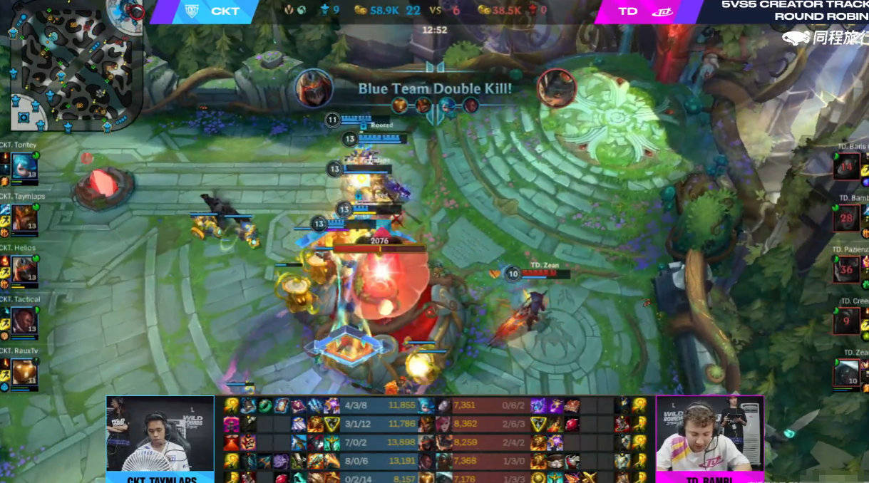 比赛开始没多久,TD的中路配合上路想要抓格温。但可惜的是,在配合上出现了失误,这也导致CKT上路的格温凭借着防御塔完成了“双杀”。在这之后,虽然TD的打野做到了一些事情,但是CKT的双人路在打野的配合下发力,更是带动了CKT整场节奏,而CKT也是快速滚起雪球。最终,CKT并没有给到TD机会,以非常巨大的优势,轻松击败了TD,赢下了这局比赛的胜利。