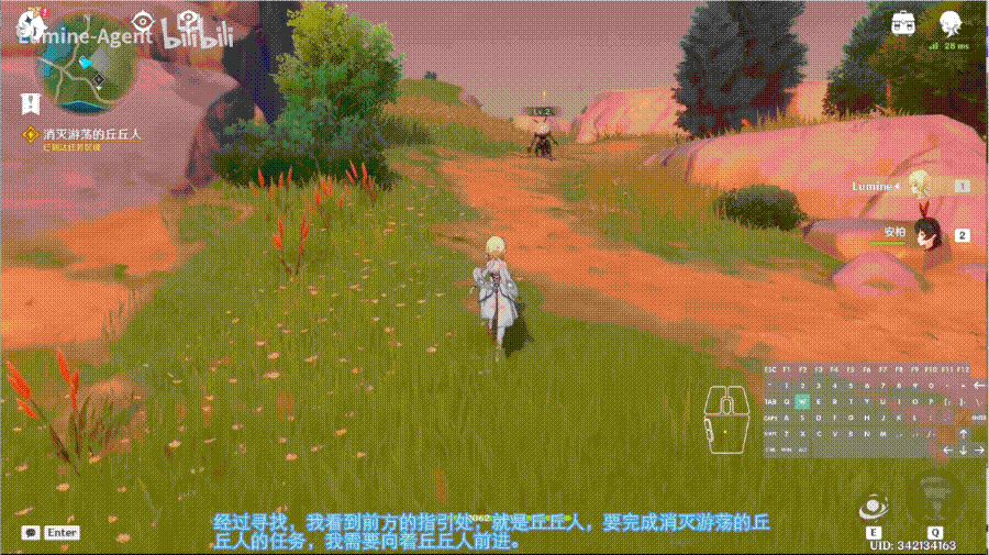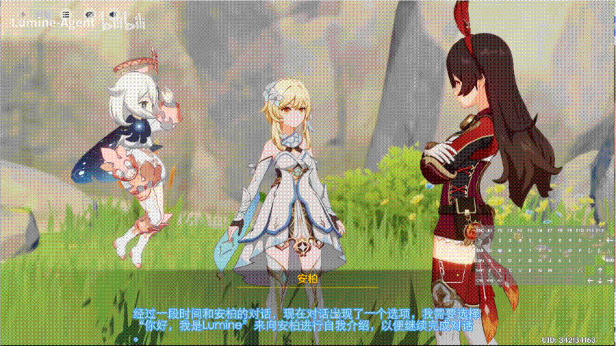 在B站,Lumine团队放出了总长超过25小时的8段实录视频,主要展示了AI游玩《原神》《崩坏:星穹铁道》和《鸣潮》的过程。