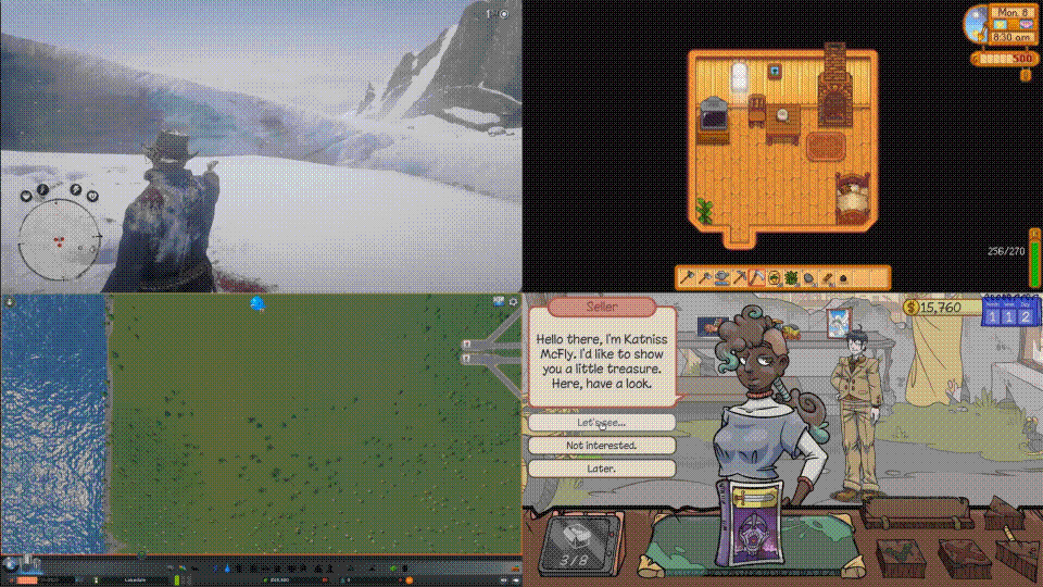 当时团队「让AI玩游戏」的技术能力还没有这么强,主要展示的能力包括:在《荒野大镖客2》中完成40分钟主线任务、在《城市:天际线》中建造千人城市、在《星露谷物语》中耕种并收获欧洲萝卜、以及在《经销商的生活2》中实现单周最高87%的交易利润率;此外,Cradle还能操作Chrome、Out书等日常软件,并使用美图秀秀、剪映处理图片和视频,展现出了一定的通用性。