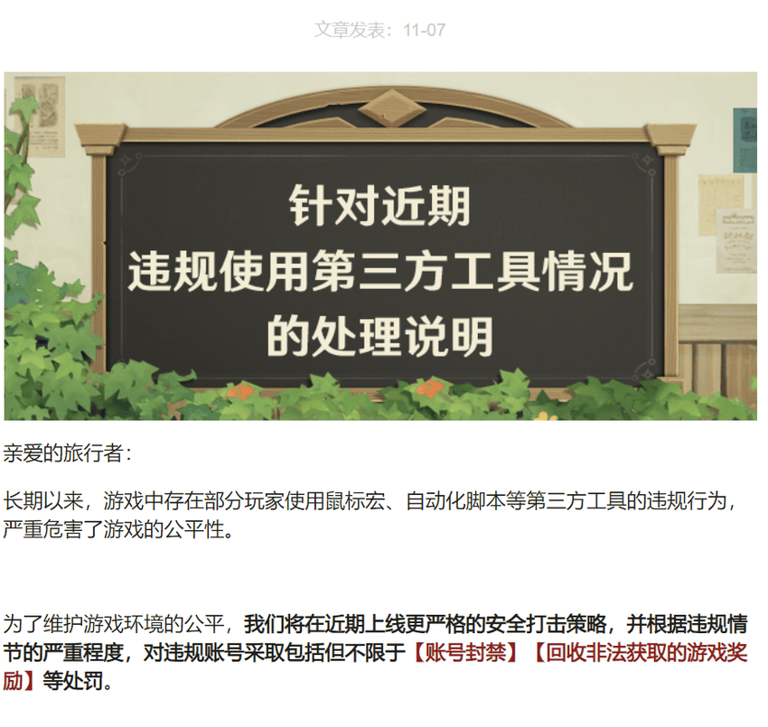 《原神》一周前还发布了打击鼠标宏、自动化脚本的违规行为,而Lumine说到底还是三方自动化脚本的一种