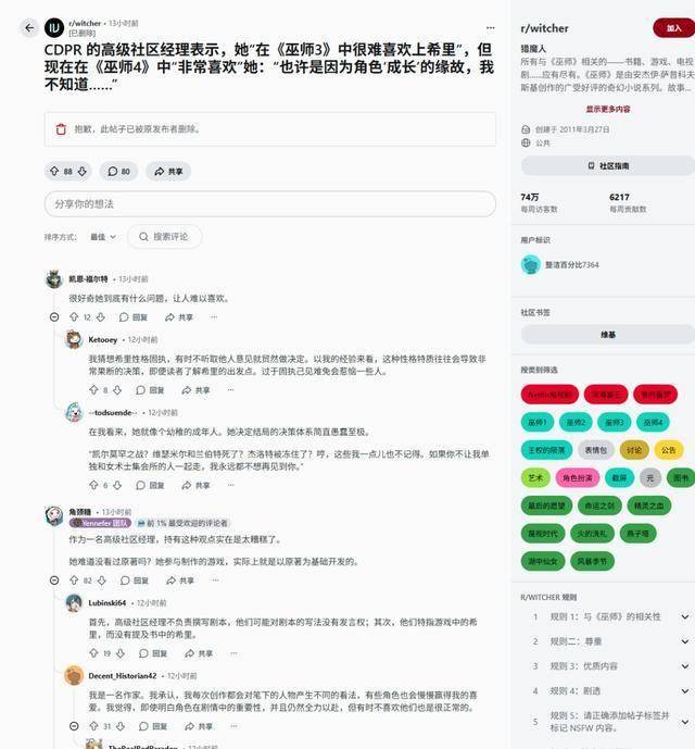 此番表态后,在玩家群体引起了巨大争议。在Reddit上有网友质疑到底这名社区经理有没有读过《巫师》小说原著。