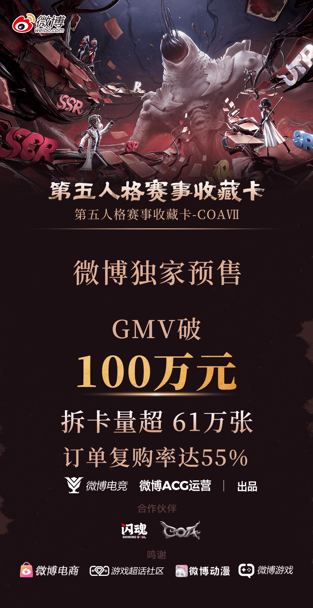 这套“谷子经济”玩法,过去一年里已多次取得亮眼成绩:以KPL选手为主题的光启系列卡包首期上线3天售罄,登顶微博ACG IP集卡榜首位,相关分享活动促使KPL相关超话的总发帖量提升了102%。第五人格赛事收藏卡在预售期间更是获得了超百万的GMV,订单复购率达55%!