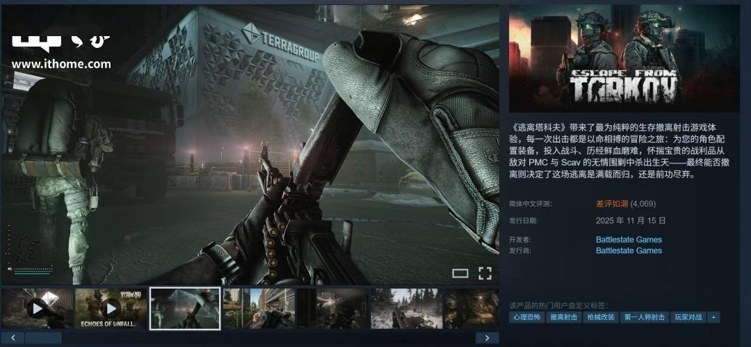 IT之家 11 月 16 日消息,自 2016 年面世以来,《逃离塔科夫》(Escape From Tarkov)凭借其极具沉浸感与挑战性的玩法机制,深刻塑造了“生存撤离类射击游戏”(extraction shooter)这一细分品类,并吸引了大量核心玩家。该游戏在漫长的 Beta 测试阶段持续迭代优化,因而其正式版(1.0 版本)的发布备受玩家期待。