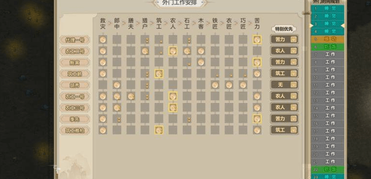 (2)可以给小人安排工作,修炼,吃饭时间。所谓的外门就是不准备让他修炼的。内门就是用来修炼打架的。内门就安排多修炼,外门就安排工作到晚上吃一顿饭然后休息就好了。
