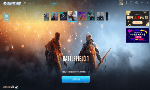 由于战地1是一款纯外服游戏,所以国内玩家在访问战地1(EA)服务器的时候,经常会因为网络访问限制,而导致游戏过程中频繁出现延迟、跳ping、卡顿、丢包的问题。大家可以在开启游戏之前先使用加游加速器对其进行一键优化加速,即可快速使其恢复到正常运行,并全程保持超低的延迟水平,稳定连接畅玩战地1。