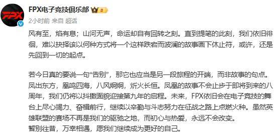 【CNMO科技消息】11月17日,FPX电子竞技俱乐部发文称,明将离开英雄联盟LPL赛事。FPX官方表示:未来,FPX依旧会在电子竞技的舞台上尽心竭力、奋楫前行,继续以辛勤与斗志努力在征战之路上点燃火种。