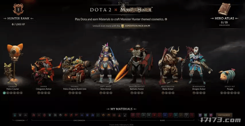 11月11日《Dota2》发布更新,《怪物猎人》联动版本上线,可以免费获得基础款皮肤,后通过刷取与付费解锁升级版。