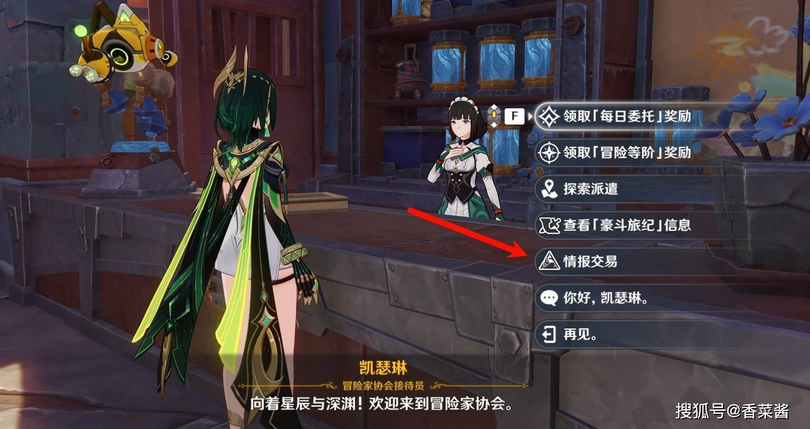 玩家们可在奈芙尔已处于队伍中时,前往挪德卡莱的凯瑟琳处,与她对话找到情报交易选项,随即就能打开情报交易的相关面板。若是在队伍不包含奈芙尔的情况下选择此选项,会出现只有秘闻馆角色才能打开该功能的提醒。