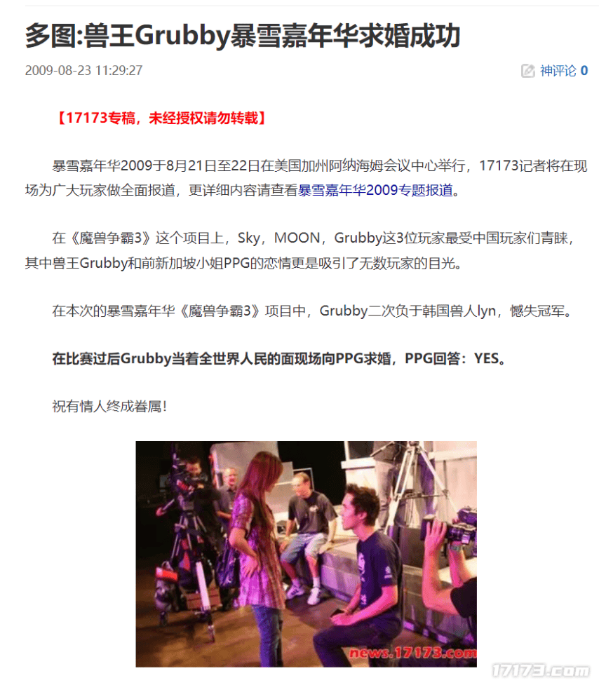 在某种程度上,Grubby还真能算电竞史上“求婚第一人”。