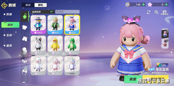 1、首先打开右上角的【商城】,这里的衣服、道具都是可以赠送的;