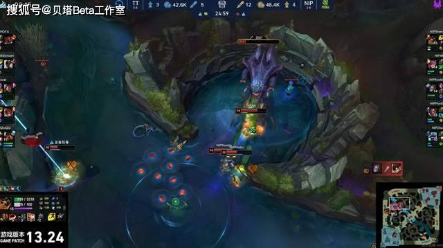22分钟TT在野区找到机会,多人抓死Rookie发条。24分钟双方大龙坑混战,TT阵容被冲散,NIP逐个击破击杀TT三人后,选择打大龙,1xn炸弹人想要来阻止也被击杀,NIP顺利拿下第一条大龙。