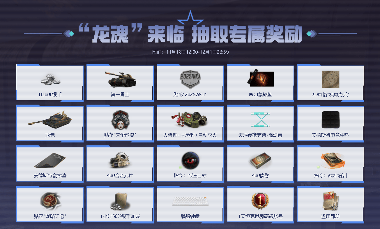 那么这些WCI券有什么用呢?答案是用来参与特殊的抽奖活动!奖池中的奖励也是很丰富,实体道具中有键盘、鼠标垫和电竞坐垫。但游戏道具就不得了了,居然有随机的WCI赛事主题坦克!