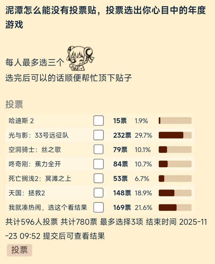 然而,即使如此,当有人举办投票时,《33号远征队》仍然拔得头筹。