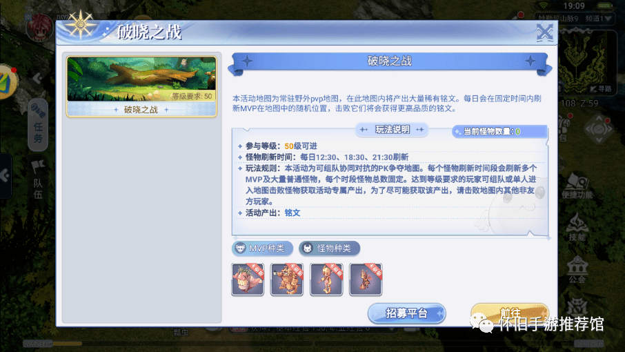卢恩铭文 主要通过破晓之战玩法获取, 破晓之战是一种 PVE和PVP相结合的玩法,初心者们可以在固定的地图中 刷 怪, 图中一共有4 个MVP 和一定数量的小怪, 它们都是有 不同概率掉落铭文或者铭文碎片的,还有一种途径就是铭文商城,铭文商城中可以花费彩钻进行铭文的购买。