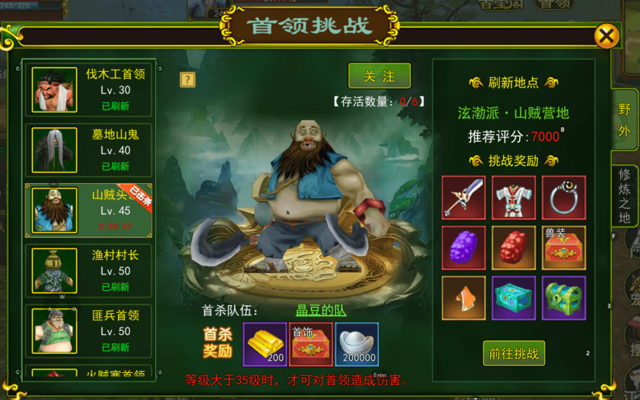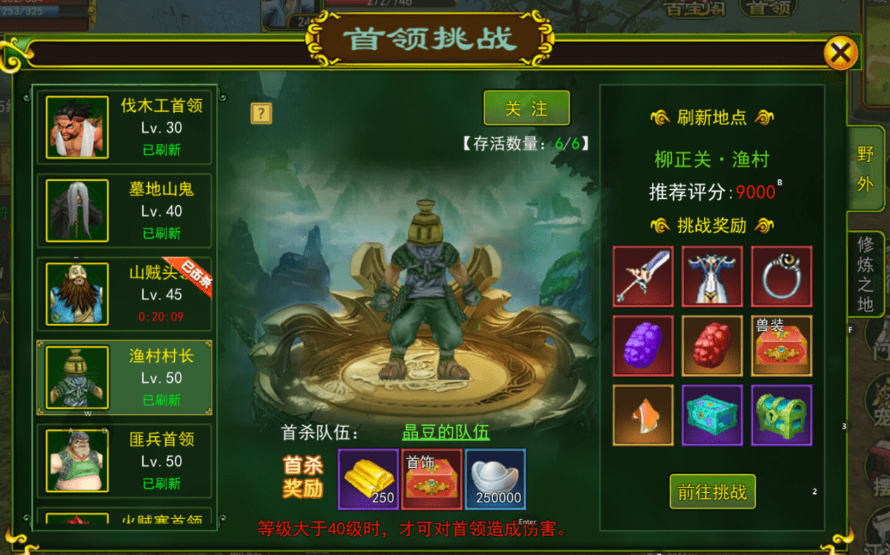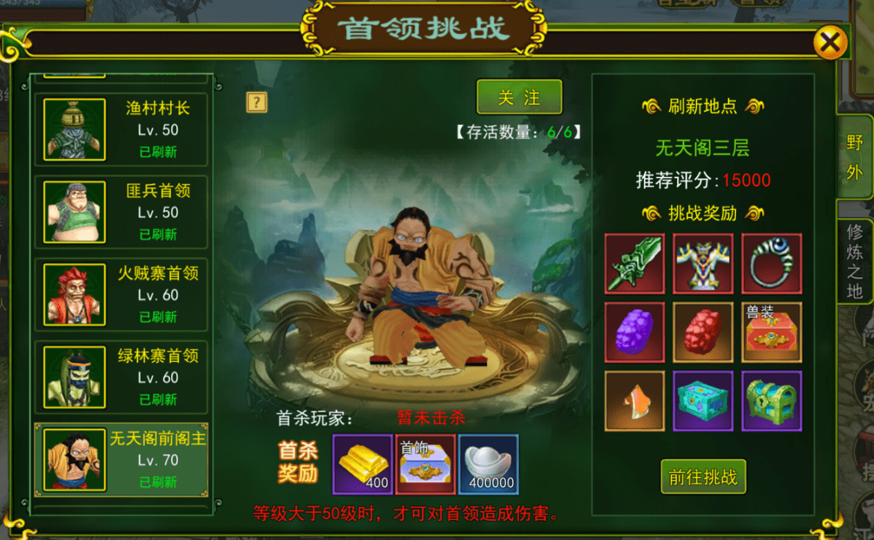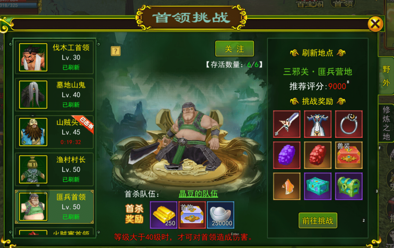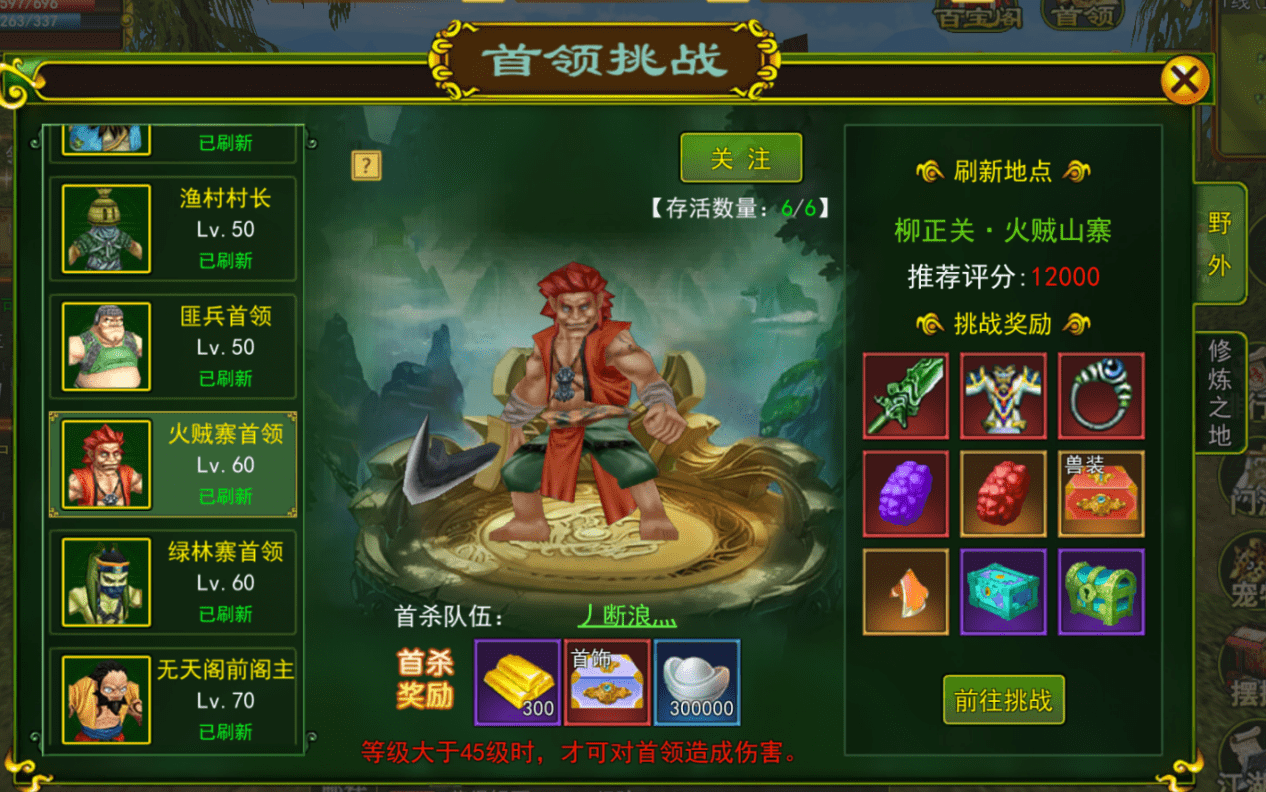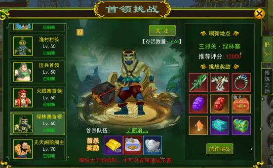 哈喽各位热血江湖手游的大侠们大家上午好小编在此见过各位大侠。在热血江湖手游中有一个副本是首领挑战,相信很多朋友都知道。首领挑战总共有八个不同的首领,每个首领所在位置不同,挑战的首领等级越高,获得的奖励越好。每个首领共有八条击杀线路,被击杀后只能等待刷新,都是固定时间刷新,刷新以后就可以再次进行挑战。不需要任何门槛即可进入,大家可以根据自己的能力选择对应的难度。挑战成功后会获得丰厚的奖励,包括武器、防具、首饰、灵宠装备箱、披风碎片、金刚石宝箱、寒玉石宝箱、热血石宝箱、强化石、属性石等大量稀有奖励。
