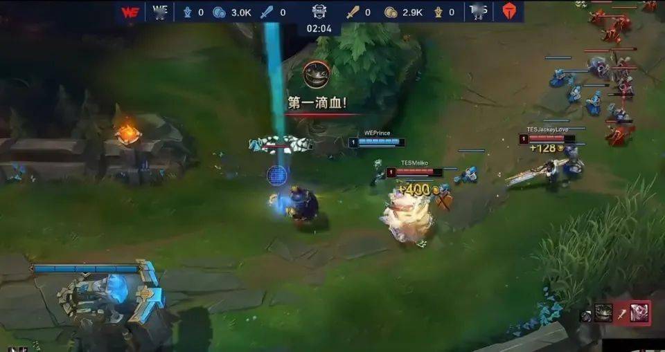 WE下路陷入巨大劣势,BP上面的一个战术彻底失效,只能靠着上中野发挥,Heng选手和Fofo在前期的博弈中发挥还算出色。
