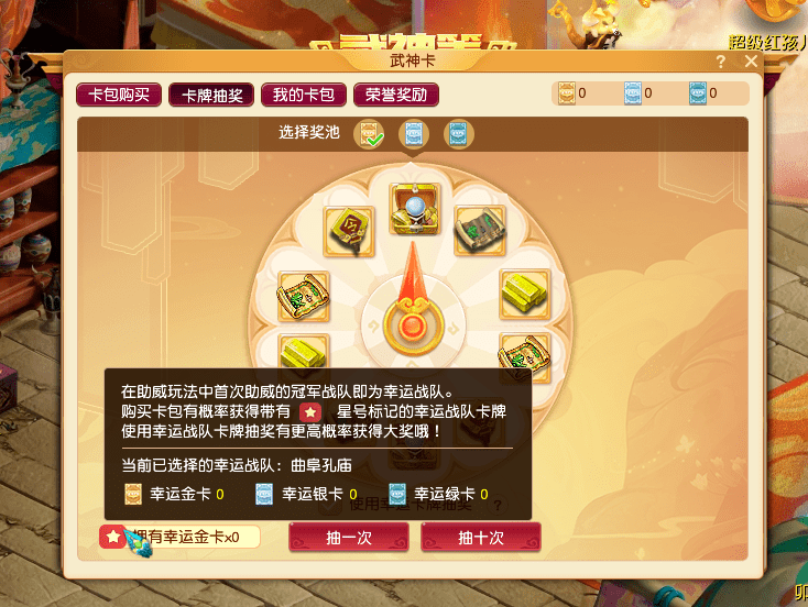 值得一提的是,购买卡包或有概率抽到自己助威的战队,抽到的卡片会附带“幸运”属性,使用这种卡片抽卡后,将拥有更高的大奖概率。要知道,金卡的幸运池不仅有五宝盒,还有特赦令牌、高级魔兽要诀等奖励。