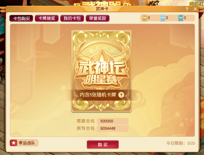 本次活动和往年一样,大家可以直接购买卡包抽卡,之后根据卡片颜色进行抽奖。卡包售价50W梦幻币,每天限购20份。