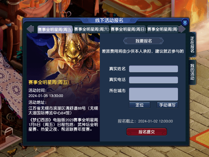 如果你想参与线下活动,可前往宝象国线下活动使者处报名,选择对应日期、填写个人信息后即可报名参与。