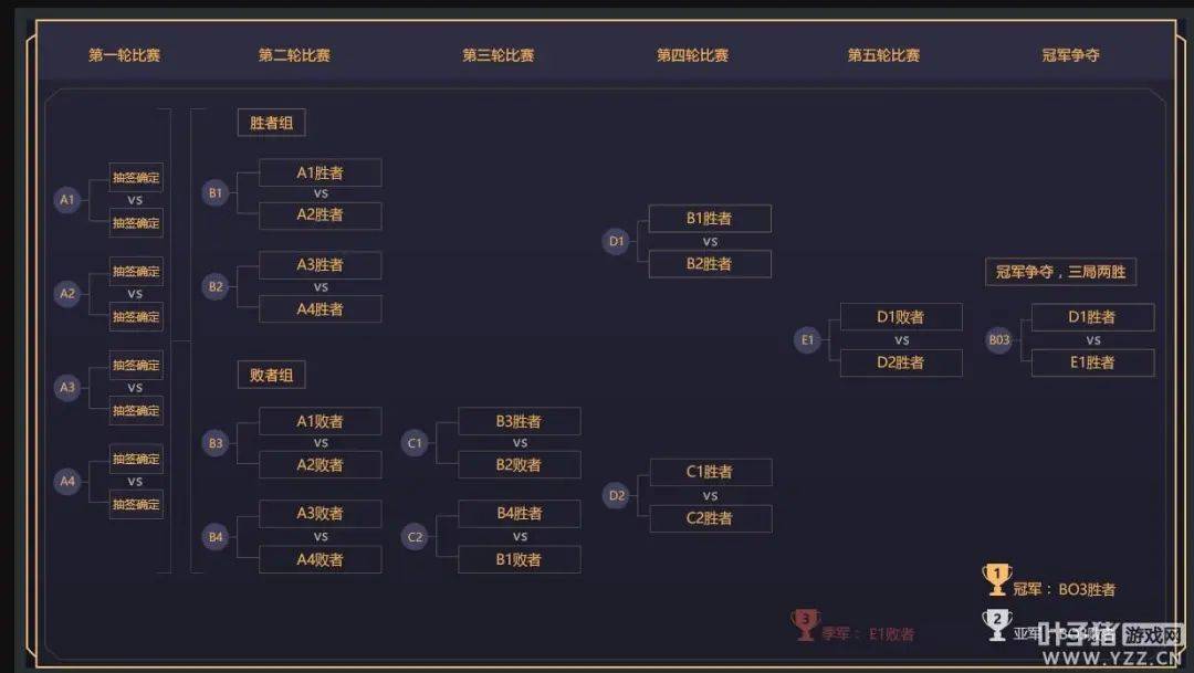 本次八强赛将采取“双败制+三局两胜冠军争夺战”赛制,第一轮比赛的对阵由8支队伍抽签确定,两两对决,获胜的队伍进入胜者组,失败的队伍进入败者组。为保证公平性,双败制期间进行两次对阵抽签:第一轮比赛前进行第一次抽签匹配,八强队伍随机对阵;第三轮比赛前进行第二次抽签匹配,对败者组4支队伍进行随机匹配。