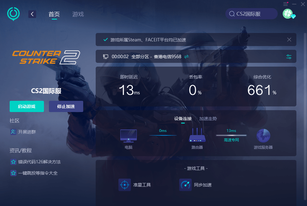 (2)点击即可优化网络,流畅游玩《CS2国际服》