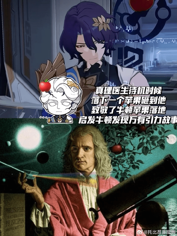 此外,真理医生在思考的时候被苹果砸中脑袋,毫无疑问致敬了经典力学的代表人物牛顿: