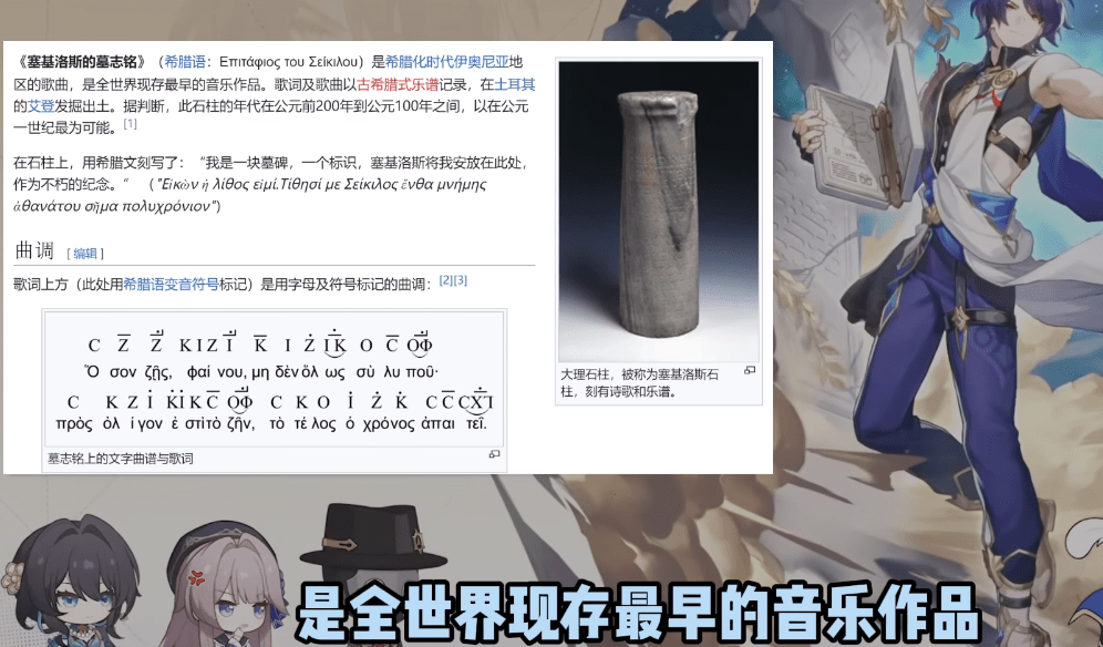 他登场的配乐是全世界现存最早的音乐作品《塞基洛斯的墓志铭》的改编: