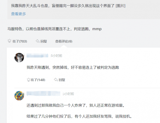 只不过,后续在网上也有玩家表示,这似乎是跟盲僧大招的判定方式有问题,他也经历过同样的被盲僧一脚踢出系统制裁画面。同时,也有玩家表示近期的服务器确实不太稳定,时不时会遇到掉线连不上的情况。