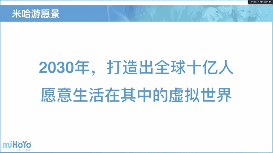 “米哈游的愿景,是希望在2030年,打造出全球10亿人愿意生活在其中的虚拟世界!”
