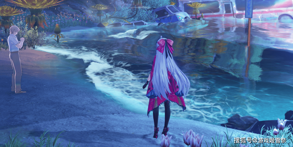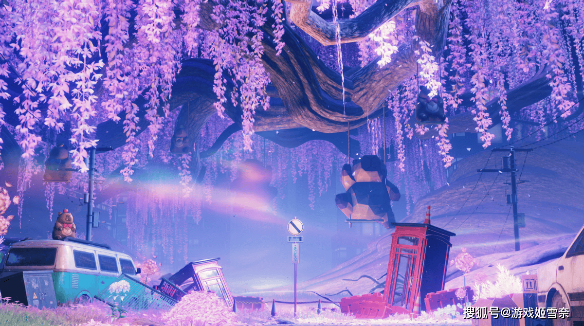 还有随处可见的各种互动物品,像是可以带着到处跑的雨伞,废都的垃圾易拉罐,掉在地上还闪光的灯笼,球场里的足球,以及每个植物经过时都会有碰撞而且碰撞体验都不相同,尤其是过剧情时有珍珠一样的白色泡沫球脚感真的好,踢一脚像气球一样一下飞老远又瞬间停下,我踢着它跑了一路。有玩家还发现所有的碰撞物都做了实机演算,他把雨伞打到路中间再开始过“CG”,结果发现伞在这段动画仍然出现,还被椿的植物触手碰到乱晃,本以为的CG动画居然是实机演算,太夸张了库洛。