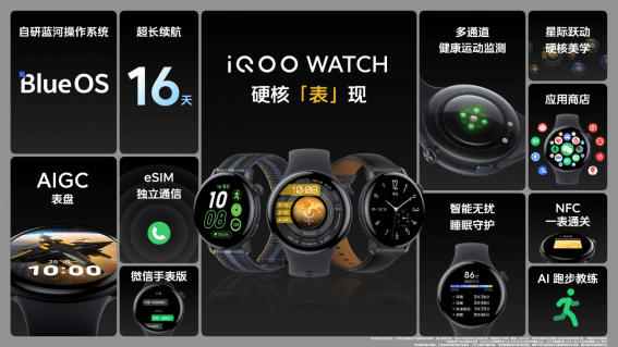 本次发布会,iQOO首款智能手表—iQOO WATCH、iQOO TWS 1e和iQOO 散热背夹 2同台登场。