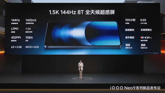 在1.5K 144Hz 8T全天候超感屏上,iQOO Neo9系列带来了领跑行业的超感触控解决方案—自研超感触控V-Sync技术,让玩家体验到高质量超分超帧并发带来畅爽无时延感。