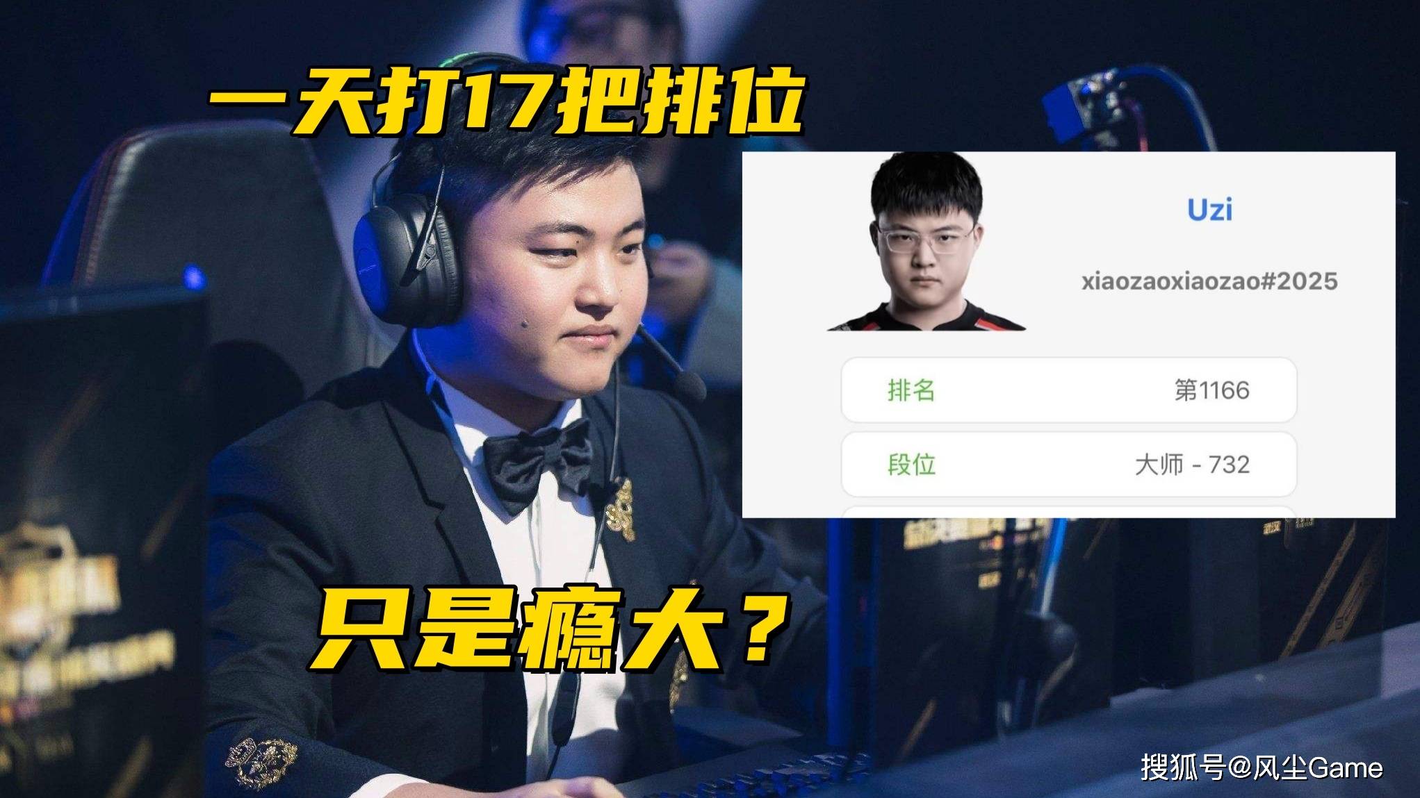 晚上玩到凌晨1点左右,白天10点钟就起来打排位,到晚饭时间,才休息了三个小时,最后打到接近12点才睡觉,一波7连胜,乌兹直接冲上韩服大师700分,这种强度的Rank,比99%的职业选手,还要高了,他之前说,打排位是瘾大,但再怎么大,也不至于,一天打17把吧,太夸张了。