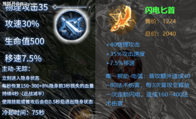 从属性来看,基础部分和闪电匕首相差不大,但闪电匕首被动伤害是全期生效,如果抠掉被动换成主动隐身,可能没有太多意义,大部分时间都是在发育和赶路,导致伤害严重不足。