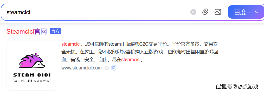 而如果你没用过steamcici的话,其实操作起来也很简单,只需要玩家先百度搜索“steamcici”,基本上弹出的第一个就是steamcici的官网了。