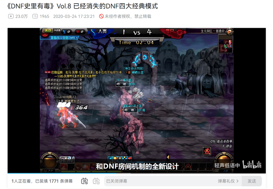 再加上它也并非官方临时起意,简单做个版本内容。其背后不仅是国服团队主导、深度参与游戏研发的协作模式升级,更有DNF历史经验的投射。比如游戏2013年推出热门限时玩法「挑战生化禁区」,就是独立平衡下的「生化模式」多人PVP。