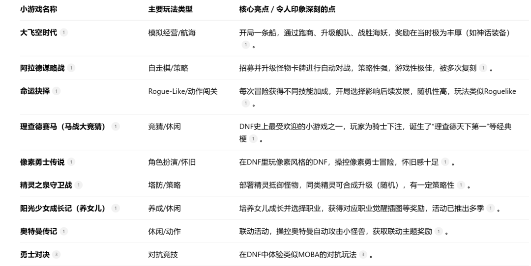 AI整理的DNF部分小游戏,仅供参考