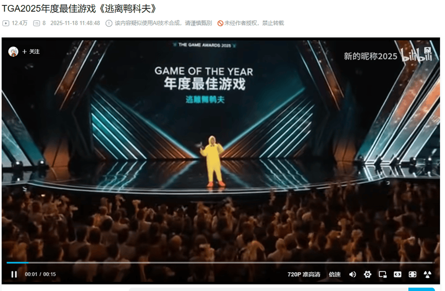 玩家利用AI生成鸭科夫获奖视频