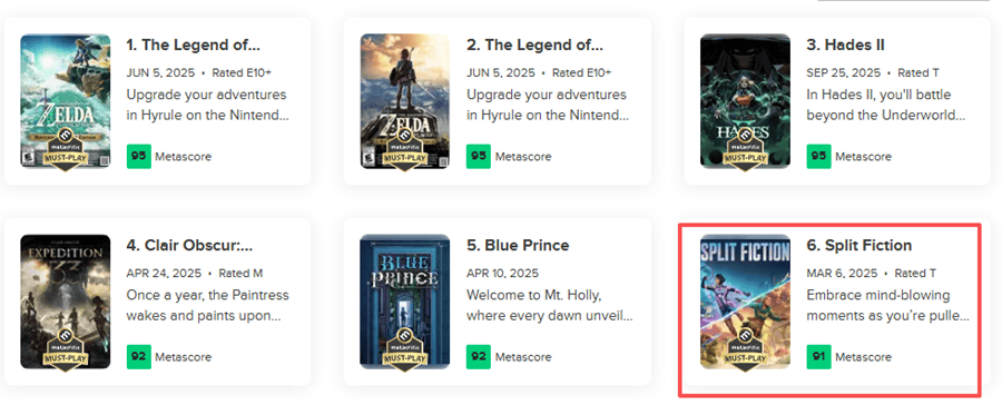 MC评分中,《双影奇境》名列新游第四(不计NS2版的塞尔达)