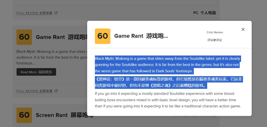 去年Screen Rant因《黑神话:悟空》“缺乏多样性,没有女性NPC”等原因,给《黑神话:悟空》打出了6分的低分;今年IGN认为《无限机兵》是“没有灵魂的类魂游戏”,给出了5分的差评。