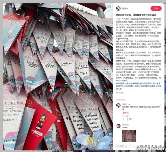除了合影留念、现场打卡等“固定”环节,你还可以看到玩家们自发在现场为喜爱的角色送上鲜花,在立牌下留下各种物料,以这种令人暖心的方式,向社区的其他玩家,分享这份共同的热爱。