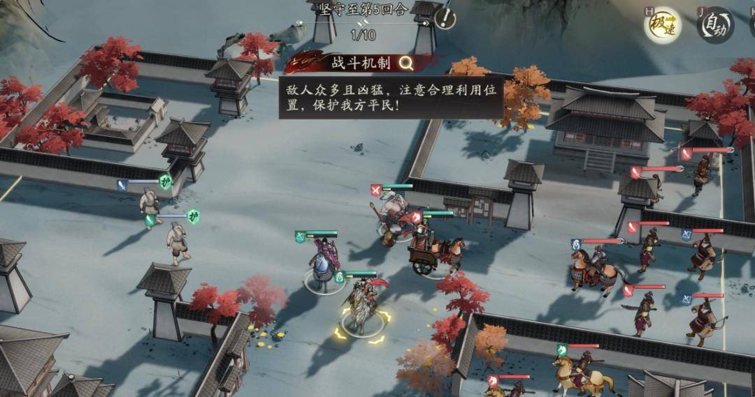 因此,这一概念便贯彻到玩家每一次的操作思考中,无论是灌伤害使对方迅速减员,还是多次触发合击凹关卡评分,乃至结合剧情中的“镇守”要求,贴边占住关键位置,让敌人无法触发合击……这一切都让玩家必须在调兵遣将中规划每一位主将的位置,在牵一发而动全身的细致决策中,依照不同的地图思考不同策略,以此得到最优的合击效果。