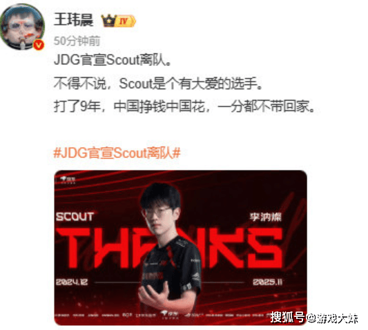知名圈内人爆料,scout回归LCK没带走一分钱,所有积蓄全赔给EDG,在转会期的风口浪尖上,选手动向总能掀起无数讨论,而近期围绕Scout的热议更是将话题推向新的高潮。随着“某圈内人爆料Scout回归LCK没带走一分钱、所有积蓄都赔给EDG”的说法在社交平台传播,舆论开始热烈讨论这位昔日LPL功勋中单的境遇。媒体人王玮晨一句“Scout是个有大爱的选手,中国挣钱中国花”,更让这个话题增添了几分调侃意味。